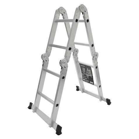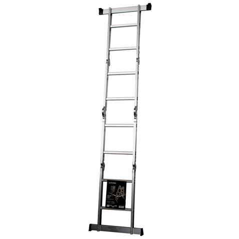 • Escalera multiposición fabricada en aluminio con 8 peldaños que se pueden colocar en 2 posiciones distinta. • Cuando está replegada puede soportar hasta 150 kg de peso como máximo se puede colocar en cualquier tipo de suelo.