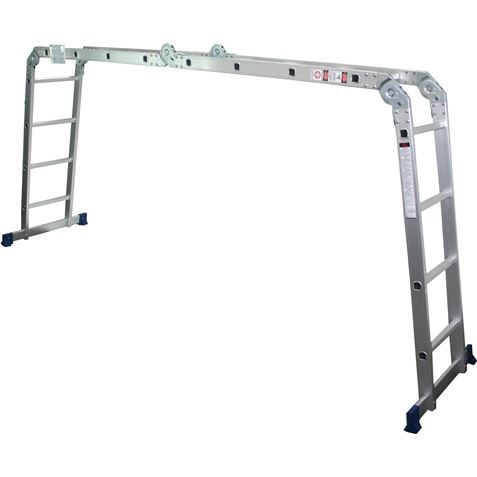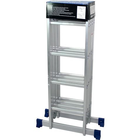 • Escalera multiposición fabricada en aluminio con 16 peldaños que se pueden colocar en 4 posiciones distinta. • Cuando está replegada puede soportar hasta 150 kg de peso como máximo se puede colocar en cualquier tipo de suelo.