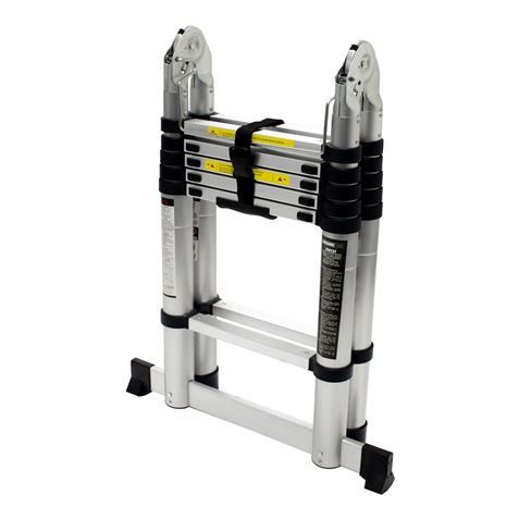 • Escalera articulada fabricada en aluminio con 12 peldaños que se pueden colocar en 2 posiciones distinta.