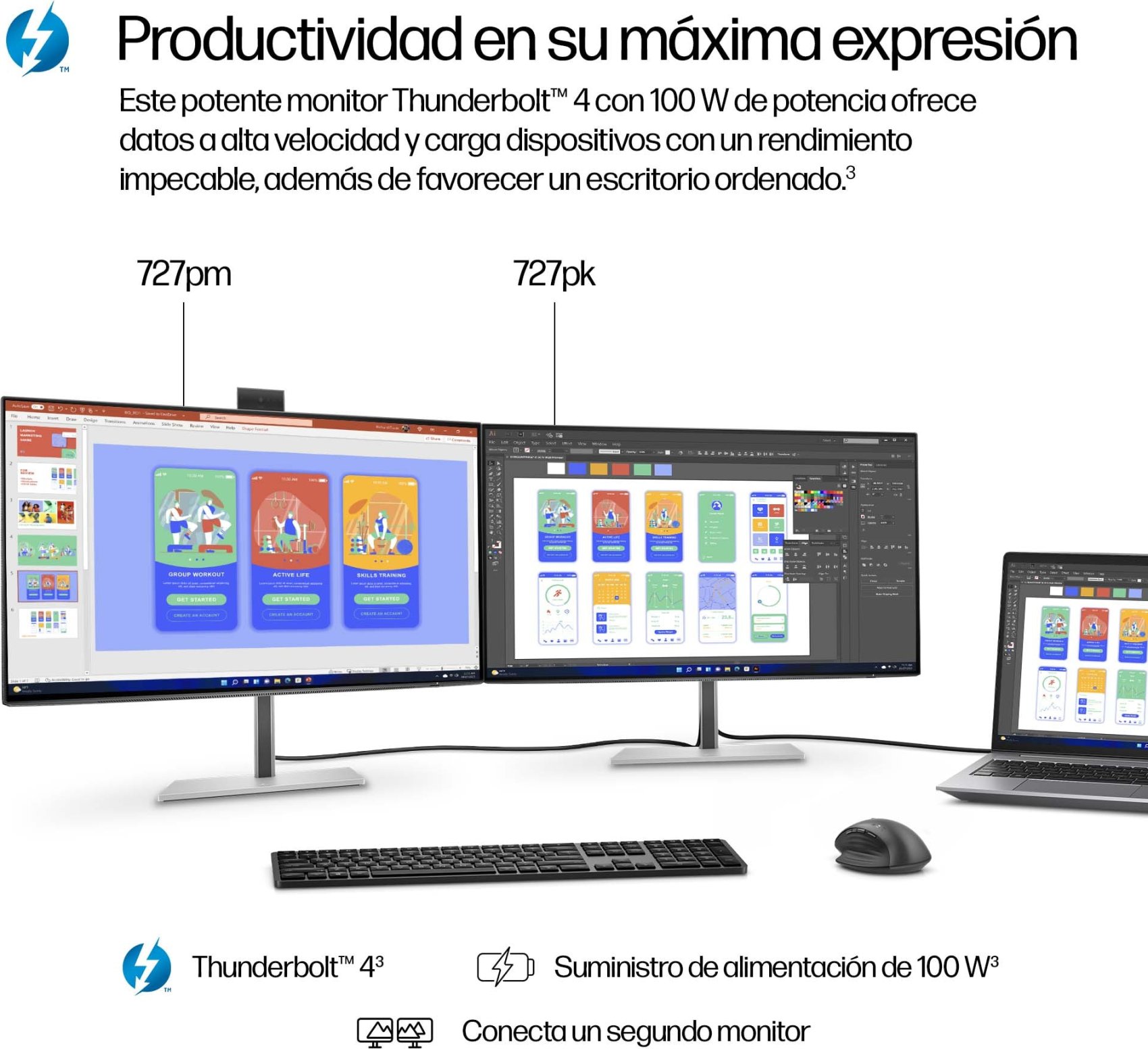- Monitor 4K Thunderbolt 4 HP Pro de la serie 7 de 27 pulgadas: 727pk