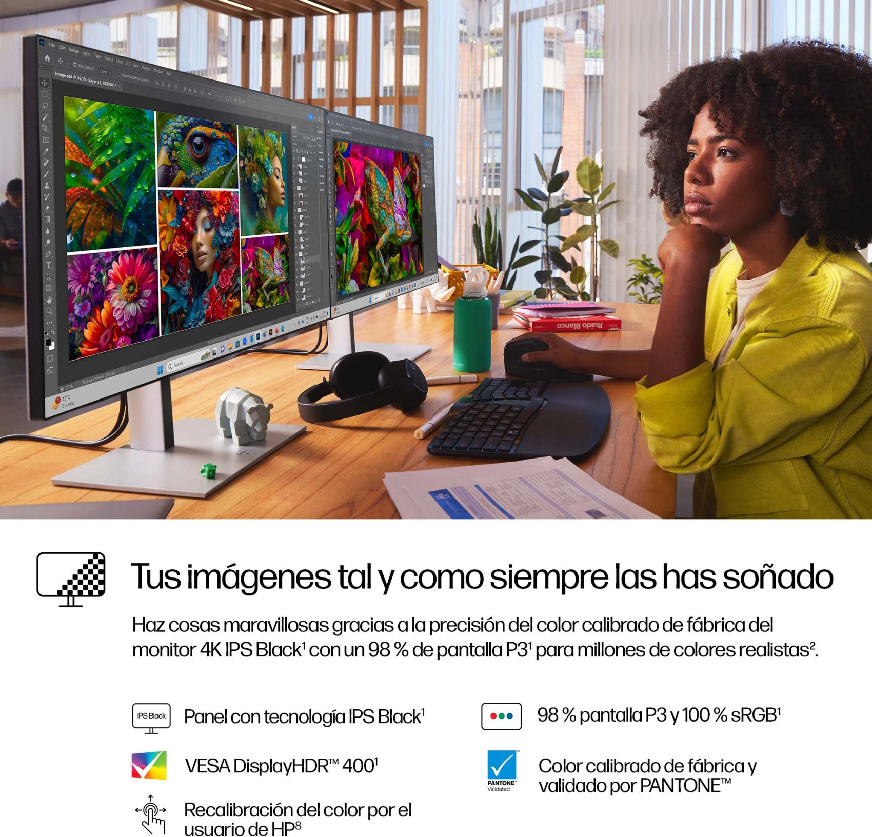 Visualiza todo tu trabajo en su máximo esplendor. Confía en lo que ves desde el primer momento gracias a la precisión del color calibrada de fábrica del monitor DreamColor.[1] Disfruta de una amplia gama de tonos definidos y realistas, además de un gran contraste, gracias a un monitor IPS Black, HDR400 y un 98 % de monitor P3, entre otras muchas opciones.[2]