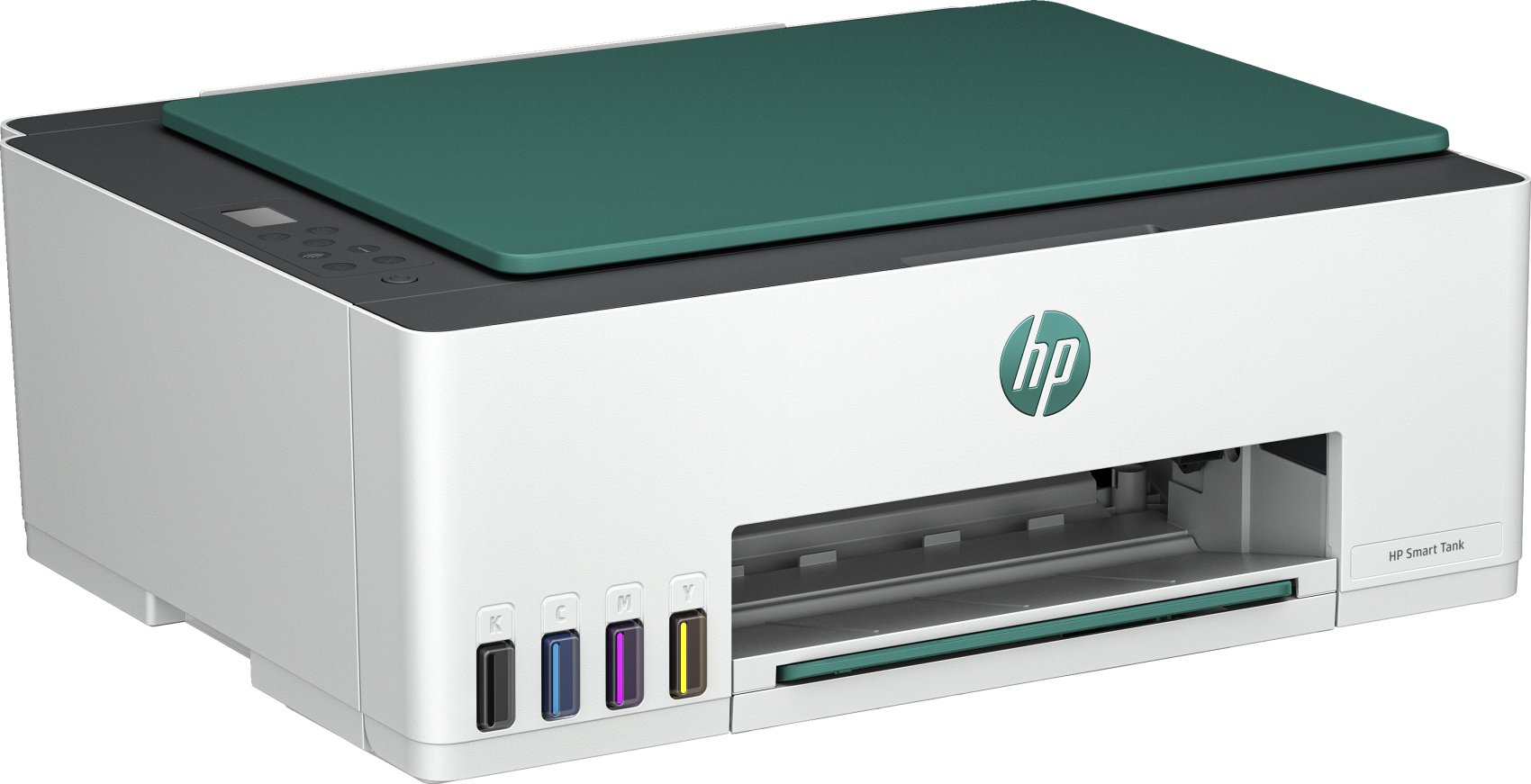 HP Smart Tank Tank Color Impresora. Tecnología de impresión: Inyección de tinta térmica, Impresión: Impresión a color, Resolución máxima: 4800 x 1200 DPI, Velocidad de impresión (color, calidad normal, A4/US Carta): 5 ppm. Copiando: Copia a color, Resolución máxima de copia: 600 x 600 DPI. Escaneando: Escaneo a color, Resolución óptica de escáner: 1200 x 1200 DPI. Funciones dúplex: Imprimir. Tamaño máximo de papel ISO A-series: A4. Wifi. Impresión directa. Color del producto: Blanco