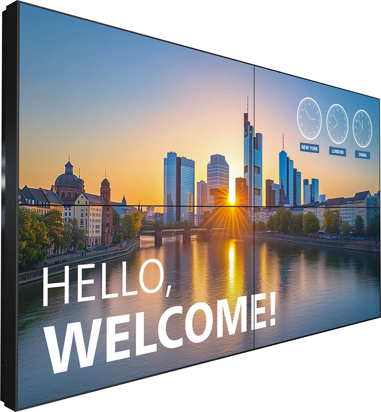 Conecta dos o más Philips pantallas profesionales para crear una pared de vídeo en mosaico sin necesidad de utilizar dispositivos externos. Una única solución para el contenido, tanto si tienes cuatro pantallas como 40. El contenido 4K es totalmente compatible y si muestra el contenido en cuatro pantallas obtendrás la mejor resolución punto a punto posible.