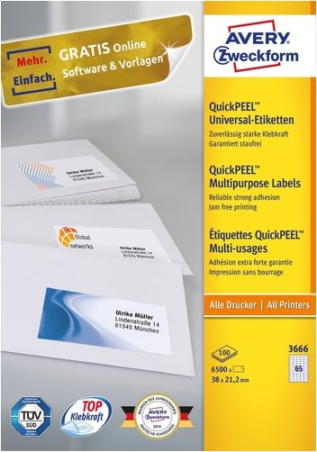 Avery 3666 Etiqueta Autoadhesiva Rectángulo Permanente Blanco 6500 Pieza (s)
