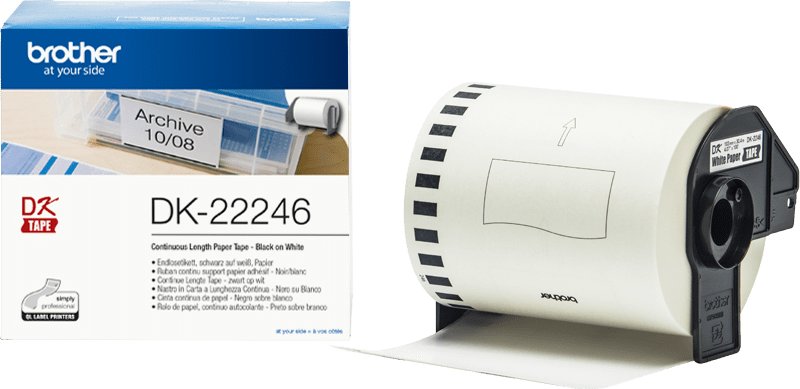 Brother DK-22246. Color de etiqueta: Negro sobre blanco, Tipo de cinta: DK, Color del producto: Negro, Blanco. Ancho de cinta: 10,3 cm, Longitud de cinta: 30,48 m, Tipo de embalaje: Caja