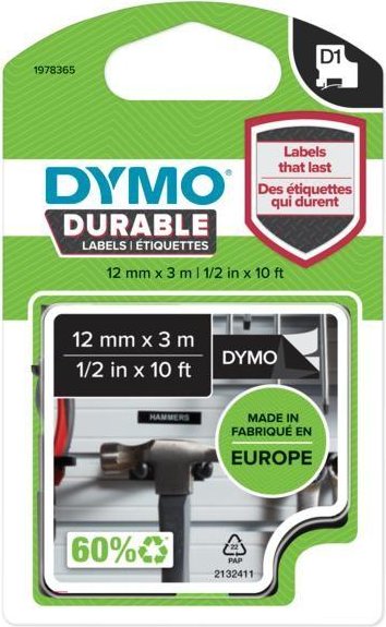 Dymo Cinta Blanco Sobre Negro Etiquetas Durable D1 12mm X 3m Negro