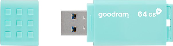 Goodram UME3. Capacidad: 64 GB, Interfaz del dispositivo: USB tipo A, Versión USB: 3.2 Gen 1 (3.1 Gen 1), Velocidad de lectura: 60 MB/s, Velocidad de escritura: 20 MB/s. Factor de forma: Tapa. Peso: 9 g. Color del producto: Turquesa