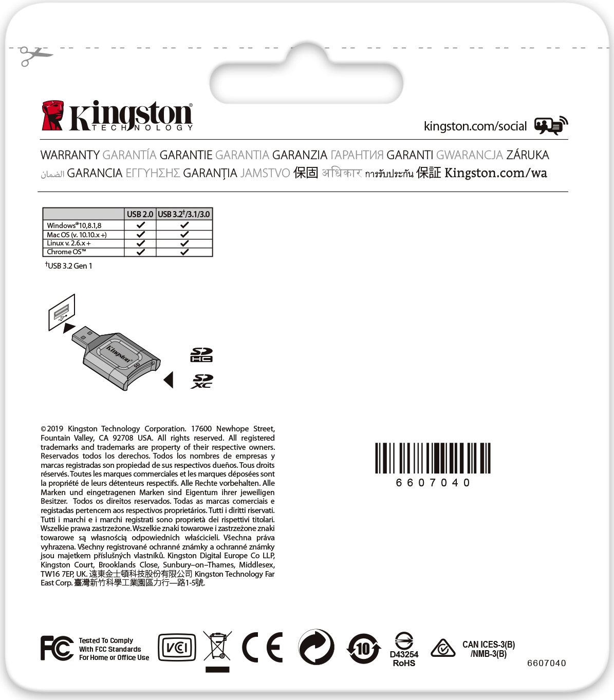Kingston Technology MobileLite Plus. Tarjetas de memoria compatibles: SD, Color del producto: Negro, Sistemas operativos compatibles: Windows 10, Windows 8.1, Windows 8, Mac OS X v. 10.10.x+, Linux v.2.6.x+, Chrome OS. Tipo de interfaz: USB 3.2 Gen 1 (3.1 Gen 1) Type-A. Ancho: 51,8 mm, Profundidad: 33,5 mm, Altura: 9 mm. Cantidad por paquete: 1 pieza(s)
