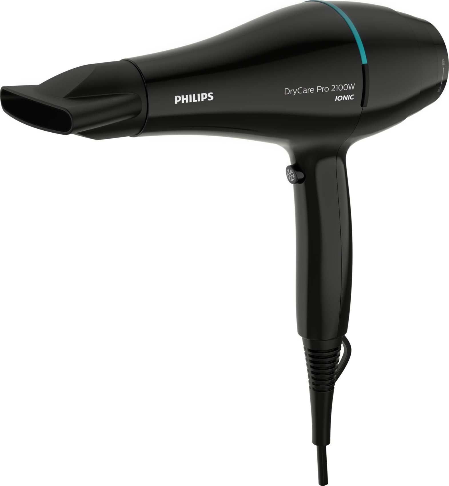 Philips DryCare BHD272/00 Secador Pro. Tipo de motor: Corriente alterna. Color del producto: Negro, Coloración de superficie: Monocromo, Tipo de colgador: Con agujero en la empuñadura para colgar. Potencia: 2100 W, Voltaje de entrada AC: 220 V, Frecuencia de entrada AC: 50 - 60 Hz. Peso: 728 g. Altura de la boquilla estrecha: 9 mm