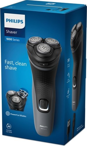 Philips Shaver 1000 Series Electric Shaver gives you a fast, clean shave and good value. The 27 self-sharpening PowerCut Blades, and full washability make the shaver easy to use and always reliable.