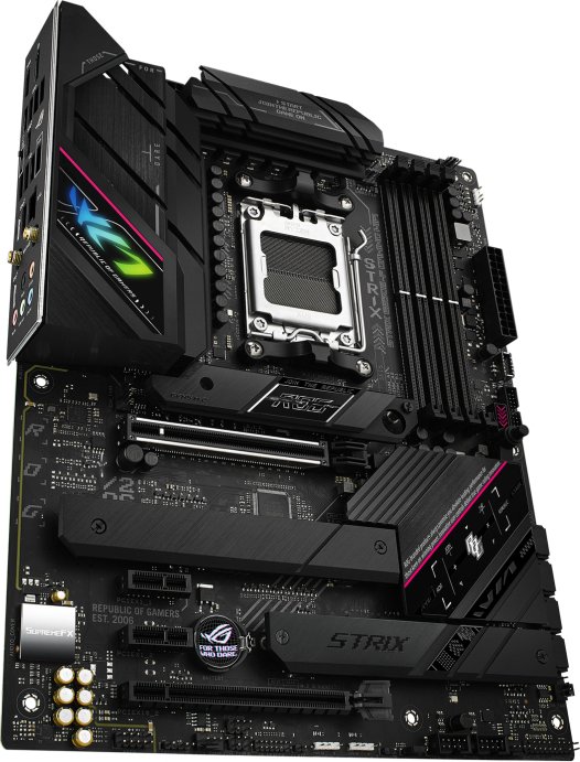 Placa base ASUS ROG Strix B650E-F Gaming WiFi AMD Ryzen AM5 ATX, 12 + 2 etapas de potencia, DDR5, tres ranuras M.2, PCIe® 5.0, WiFi 6E, LAN de 2,5 Gb, puerto USB 3.2 Gen 2x2 tipo C® y Aura Sync RGB