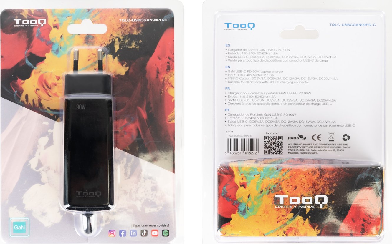 Cargador Tooq Usb-c Pd 90w Negro (TQLC-USBCGAN90PD-C)