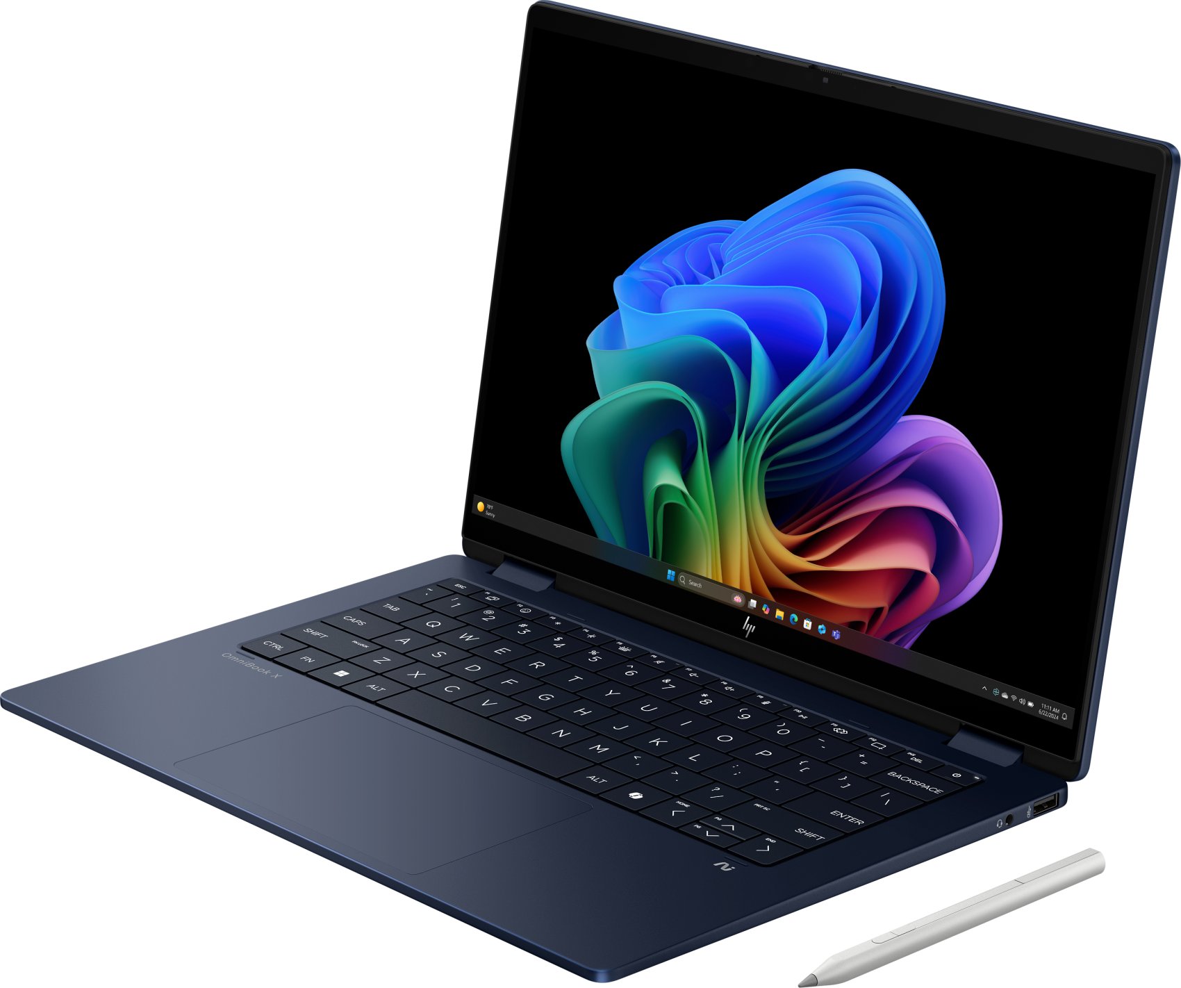 El ordenador compacto y ligero HP OmniBook X Flip 14 con IA de próxima generación permite a los creativos trabajar y jugar desde cualquier ángulo con varios modos, y cuenta con un monitor de alta resolución de lado a lado para disfrutar de imágenes claras y definidas, un procesador impulsado por IA y una batería de carga rápida durante todo el día para ofrecer velocidad, rendimiento y resistencia que te permitirán crear desde cualquier parte.