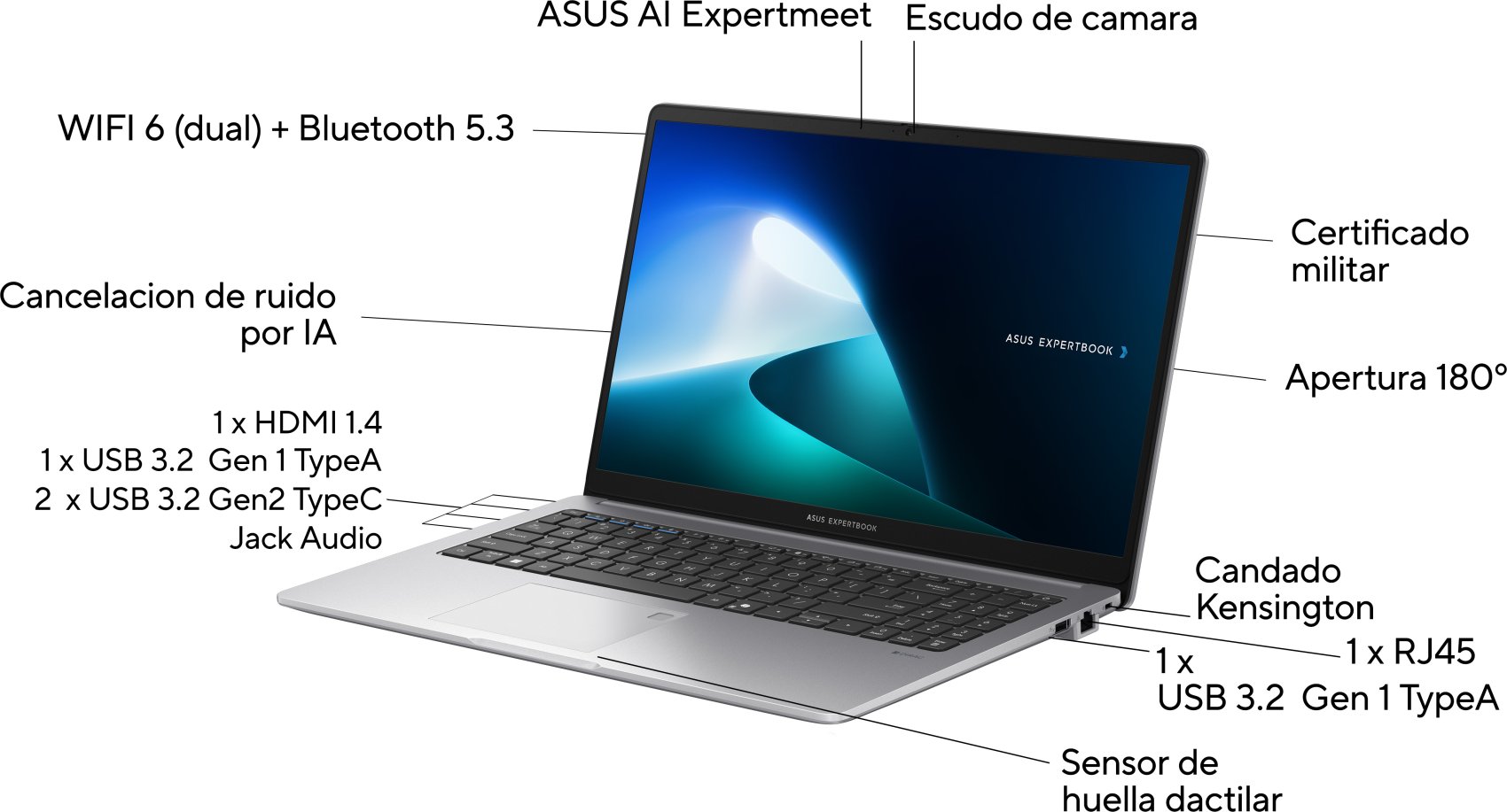 ASUS ExpertBook P1 P1503CVA-S70402 - Ordenador Portátil 15.6" Full HD (Intel Core i3-1315U, 16GB RAM, 512GB SSD, UHD Graphics, Sin Sistema Operativo) Gris Brumoso - Teclado QWERTY español. Tipo de producto: Portátil, Factor de forma: Concha. Familia de procesador: Intel® Core™ i3, Modelo del procesador: i3-1315U. Diagonal de la pantalla: 39,6 cm (15.6"), Tipo HD: Full HD, Resolución de la pantalla: 1920 x 1080 Pixeles. Memoria interna: 16 GB, Tipo de memoria interna: DDR5-SDRAM. Capacidad total de almacenaje: 512 GB, Unidad de almacenamiento: SSD. Modelo de adaptador gráfico incorporado: Intel® UHD Graphics. Color del producto: Gris