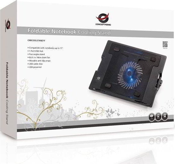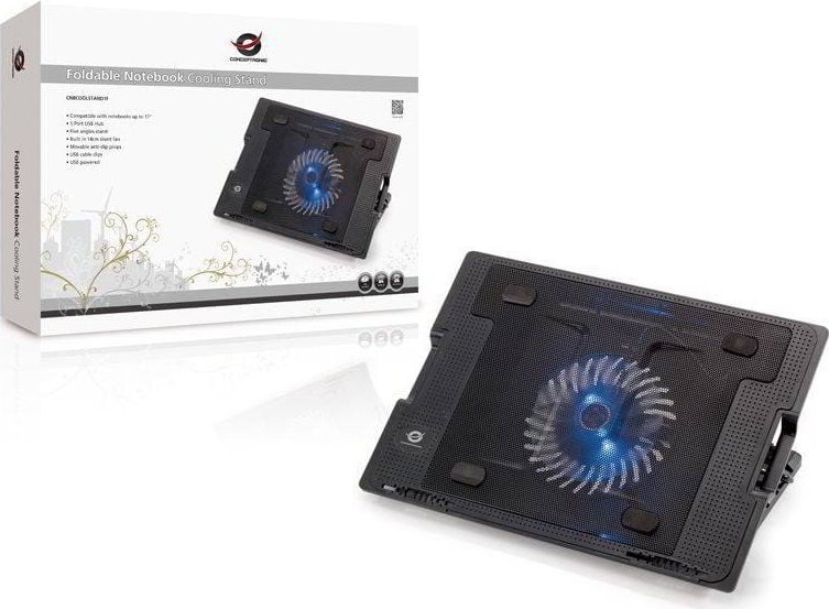 La base plegable de refrigeración para equipos portátiles de Conceptronic es la base de refrigeración multifunción perfecta para cualquier situación. El versátil dispositivo se puede utilizar como base para equipos portátiles o como plataforma de refrigeración y recibe alimentación a través de una interfaz USB, por lo que se puede utilizar de forma independiente de una fuente de alimentación externa. Como base, se puede ajustar con 5 ángulos diferentes para proporcionar el entorno de trabajo ideal para cualquier circunstancia. La base de refrigeración de Conceptronic cuenta con una superficie de malla metálica sofisticada con un potente y, al mismo tiempo, silencioso ventilador de 14 cm para evitar que los dispositivos se calienten en exceso. Una incorporación con estilo y muy útil para cualquier estación de trabajo móvil.