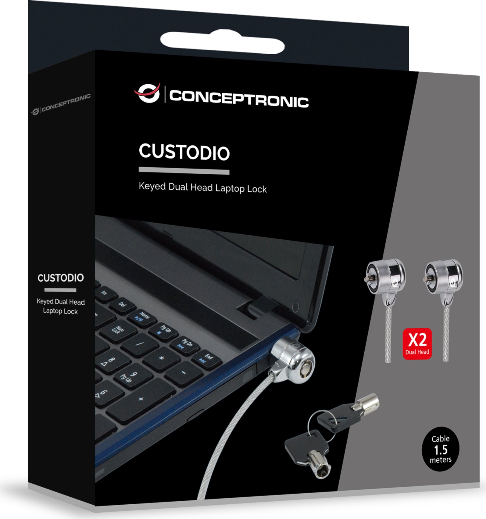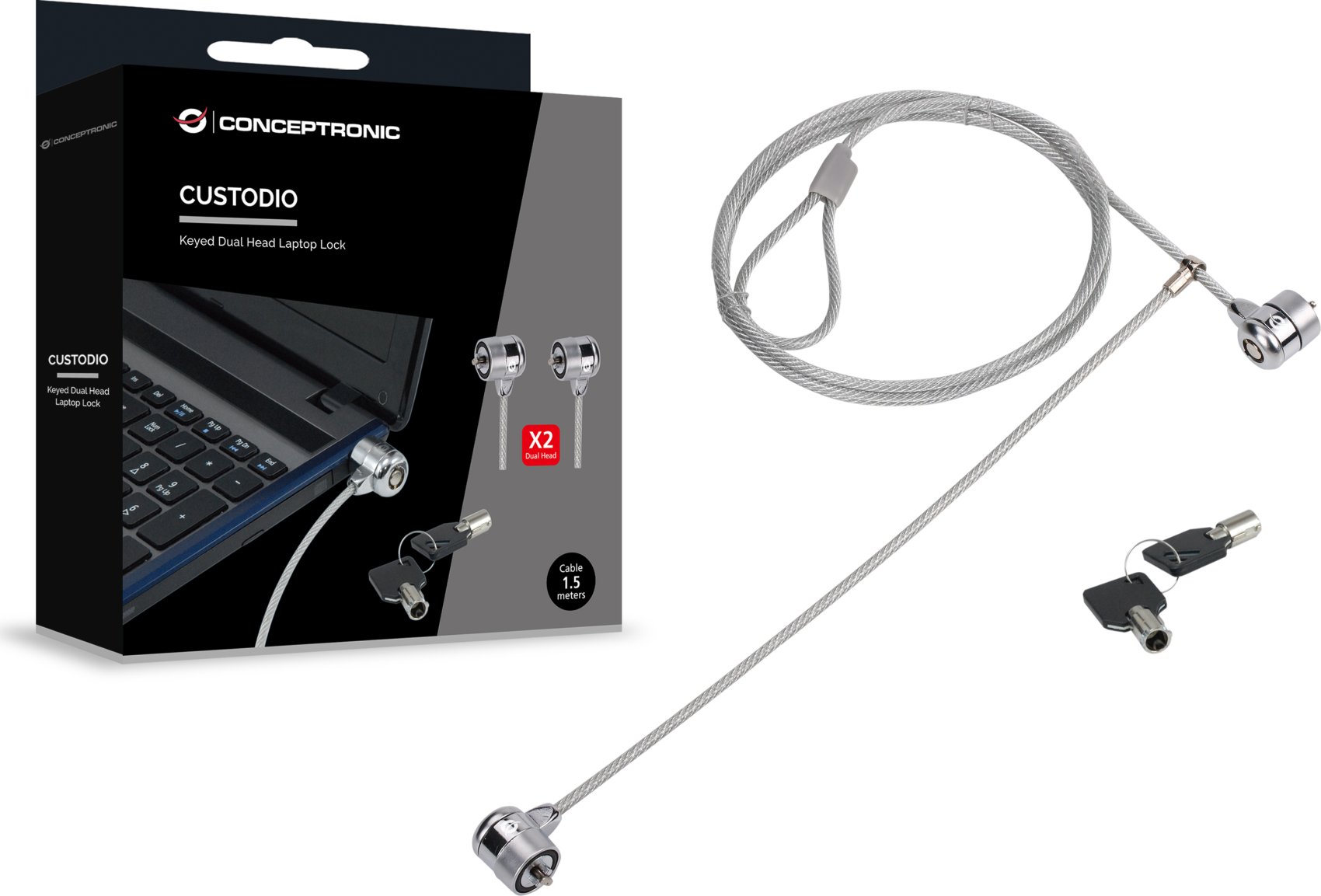 Cable Seguridad Conceptronic 1.5m 2 Llaves (CNBSLOCK15T)