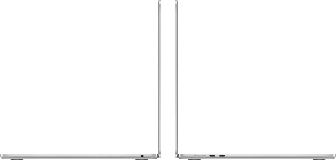 MacBook Air, 15.3" Liquid Retina, 2880x1864, Apple M3 8-core CPU, 10-core GPU, 512GB SSD, 8GB unified memory, 2 x Thunderbolt 3, 802.11ax, Bluetooth 5.3, macOS, plataCompatible: