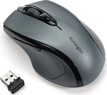 Kensington Ratón inalámbrico Pro Fit™ tamaño mediano, gris grafito. Factor de forma: mano derecha. Tecnología de detección de movimientos: Óptico, Interfaz del dispositivo: RF inalámbrico, Resolución de movimiento: 1600 DPI, Tipo de botones: Botones presionados, Cantidad de botones: 3, Tipo de desplazamiento: Rueda. Fuente de energía: Baterías. Color del producto: Gris