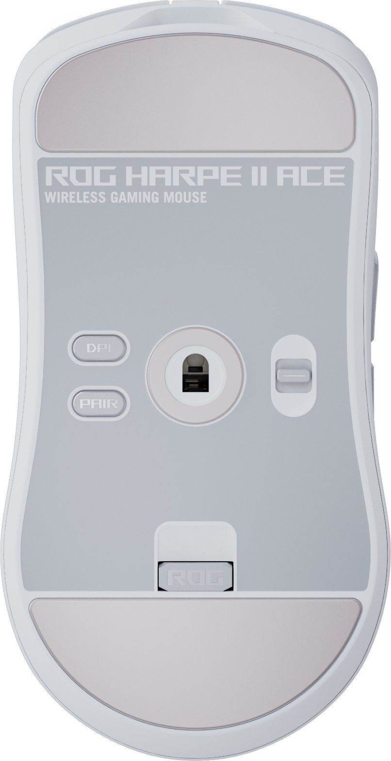 ASUS ROG Harpe II Ace. Factor de forma: mano derecha. Tecnología de detección de movimientos: Óptico, Interfaz del dispositivo: RF Wireless + Bluetooth + USB Type-A, Resolución de movimiento: 42000 DPI, Tipo de botones: Botones presionados, Cantidad de botones: 5, Tipo de desplazamiento: Rueda, Aceleración (máx.): 50 G. Fuente de energía: Baterías/Cable. Color del producto: Blanco