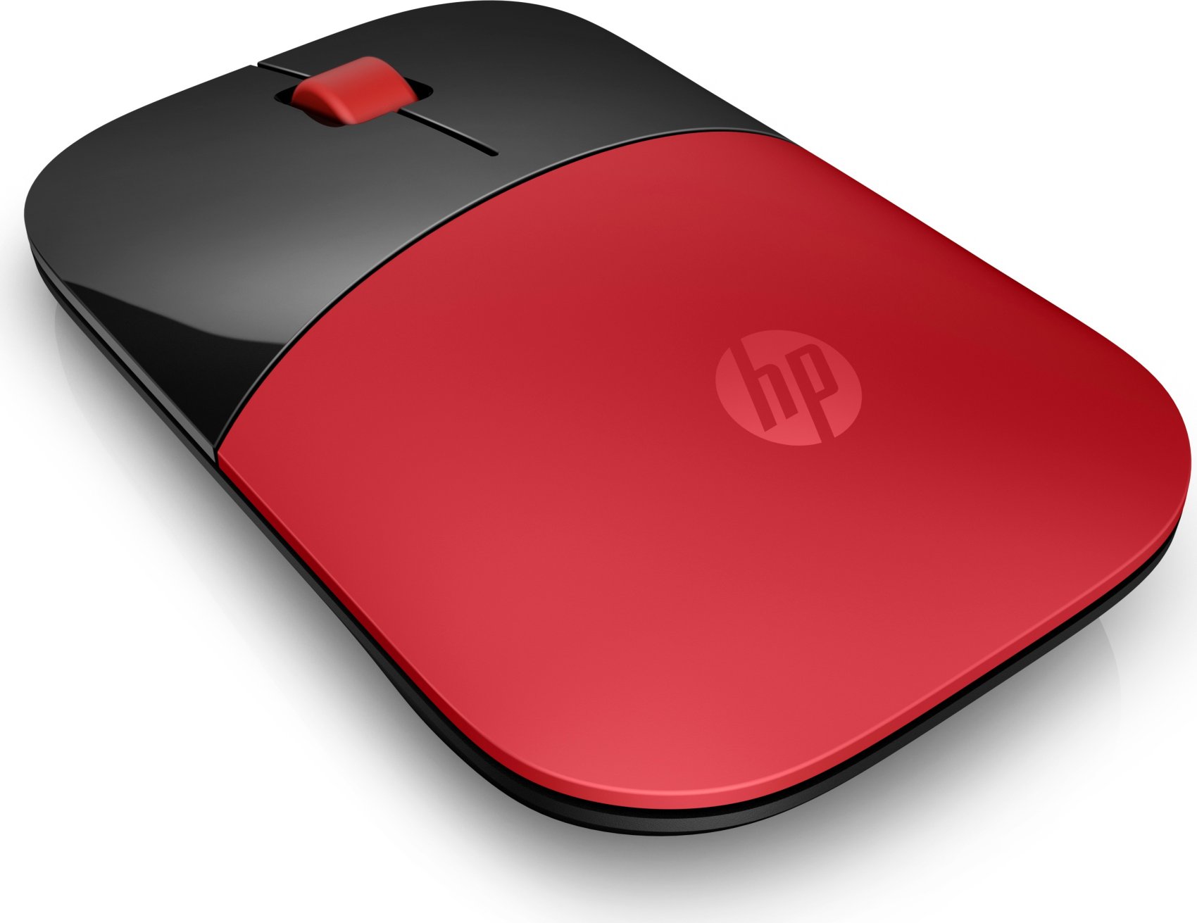 HP Ratón inalámbrico rojo Z3700. Factor de forma: Ambidextro. Tecnología de detección de movimientos: Óptico, Interfaz del dispositivo: RF inalámbrico, Resolución de movimiento: 1200 DPI, Tipo de botones: Botones presionados, Cantidad de botones: 3, Tipo de desplazamiento: Rueda. Fuente de energía: Baterías. Color del producto: Negro, Rojo
