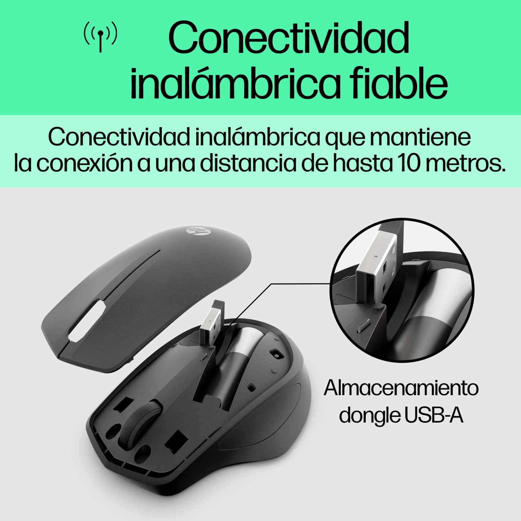 Haz tu trabajo a lo largo del día con el ratón inalámbrico que permanece conectado. Nada parará tu productividad gracias al diseño ergonómico y la duración de la batería de hasta 18 meses[1]. Y gracias al clic silencioso, sentarás lo mismo al hacer clic pero sin escuchar el ruido. Además, gracias a la tecnología Blue Optical de HP, trabaja sobre cualquier superficie en cualquier momento.