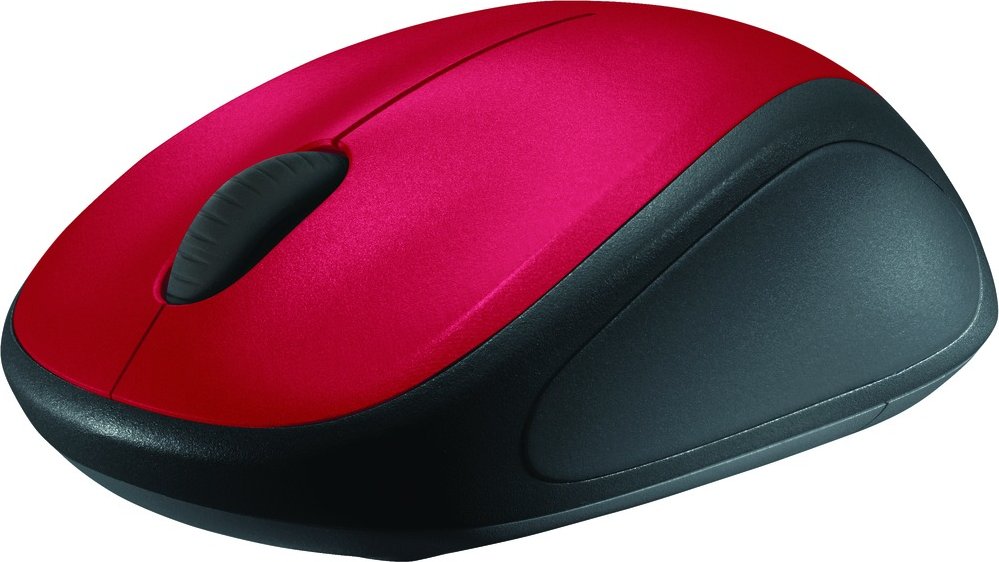 Logitech M235. Factor de forma: Ambidextro. Tecnología de detección de movimientos: Óptico, Interfaz del dispositivo: RF inalámbrico, Tipo de botones: Botones presionados, Cantidad de botones: 3, Tipo de desplazamiento: Rueda. Fuente de energía: Baterías. Color del producto: Negro, Rojo