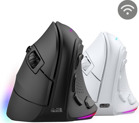 - MM-SK, Ratón Gaming Inalámbrico Vertical, Diseño Ergonómico, Iluminación RGB Chroma, Sensor Óptico Pixart 8400DPI, Switches Mecánicos Huano, 9 Botones Programables, Ratón PC Tri-Mode Negro