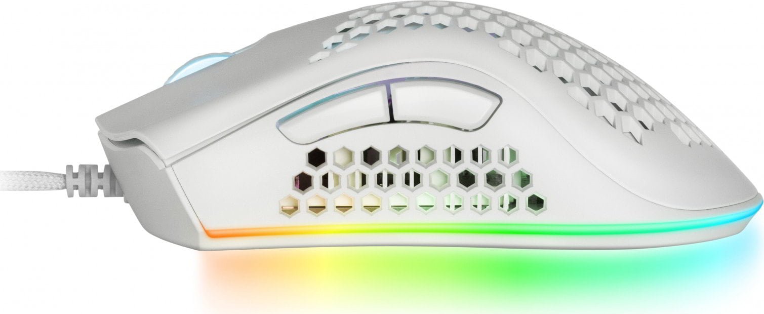 - MMEX, Ratón Gaming RGB, 32K DPI, Cable Feather, Switches Ópticos, Blanco, One Size