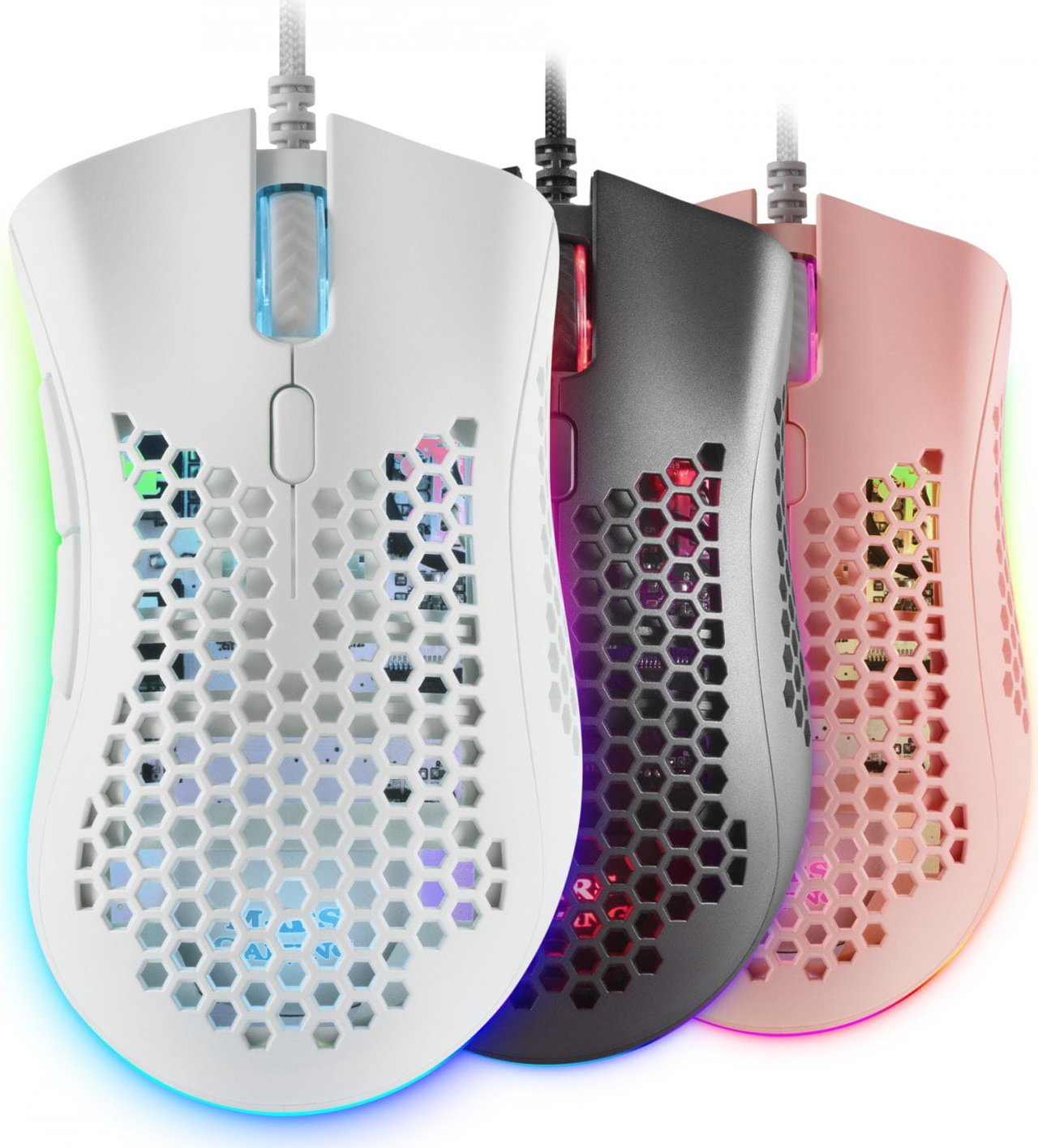 La más alta tecnología en ratones gaming premium a tu alcance. Hasta 32K DPI gracias a su óptica customizada Pixart 3389PRO con control avanzado, switches ópticos un 300% más rápidos que los mecánicos y un 50% más duraderos, estructura ultraligera HIVE de 75gr, cable feather Paracord, base de PTFE 100%, iluminación CHROMA RGB, software programable. Además, podrás elegir entre 3 versiones disponibles: negro, blanco y rosa.
