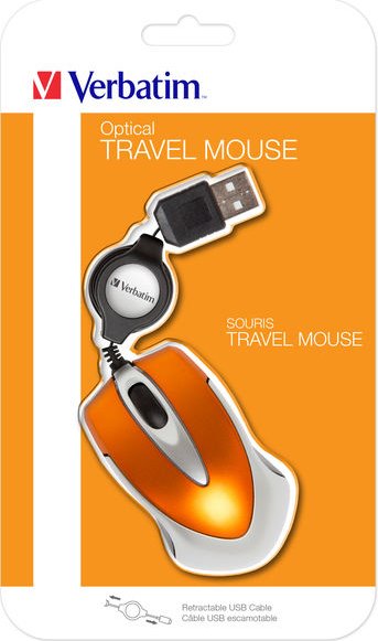 Verbatim Go Mini. Tecnología de detección de movimientos: Óptico, Interfaz del dispositivo: USB tipo A, Resolución de movimiento: 1000 DPI, Cantidad de botones: 2, Tipo de desplazamiento: Rueda. Color del producto: Naranja