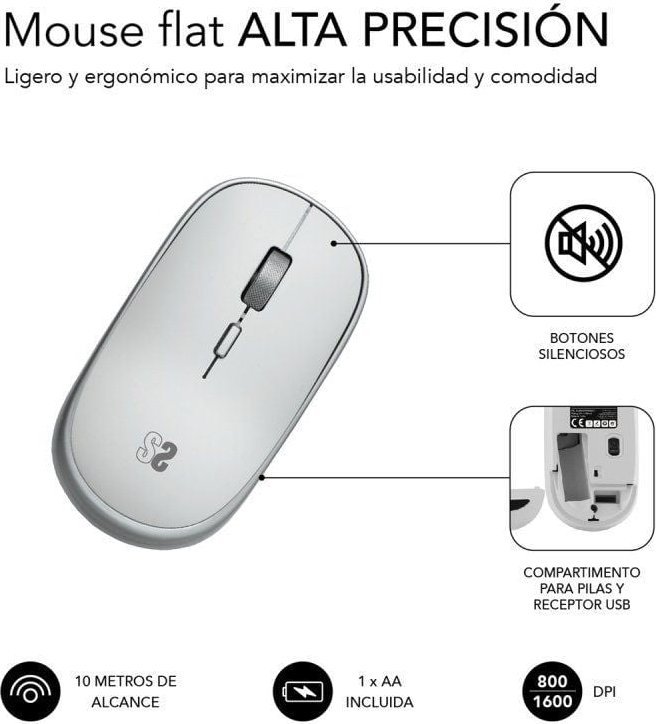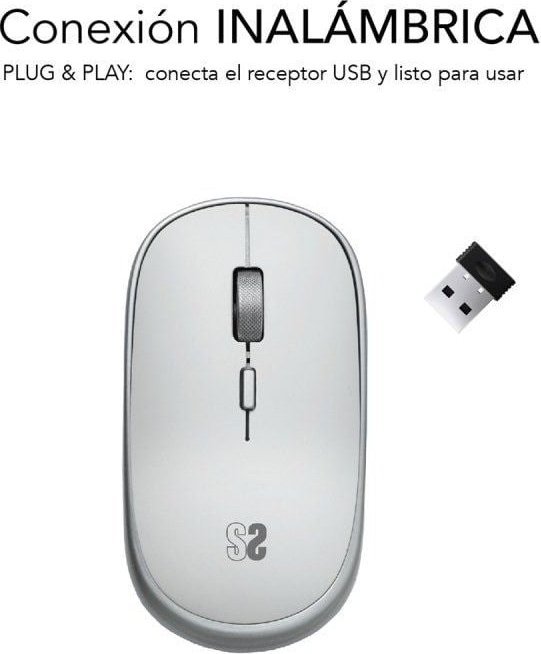 Subblim Mini Raton Inalambrico 1600 Dpi Optico Plata, Blanco