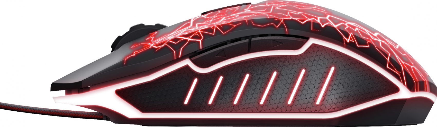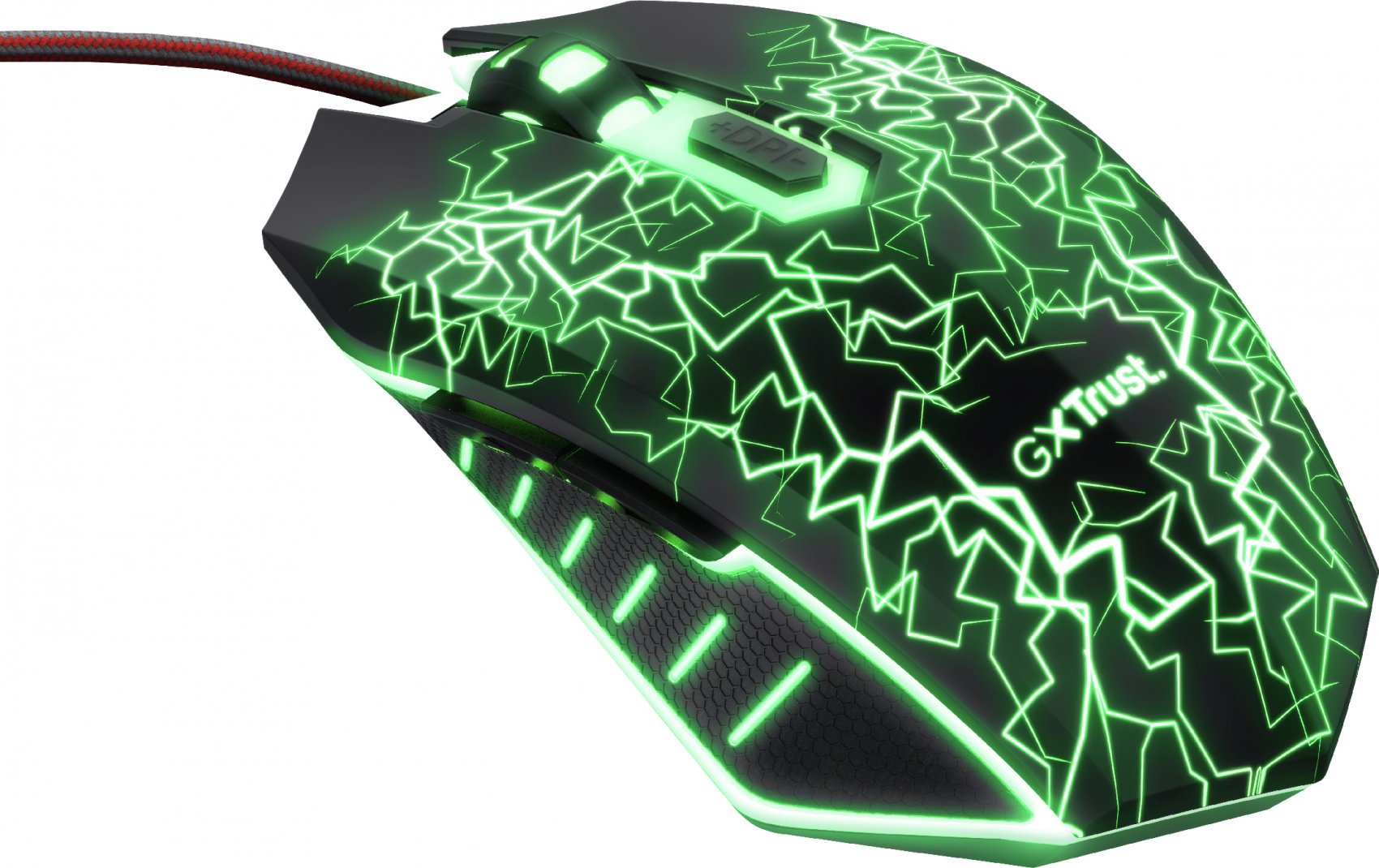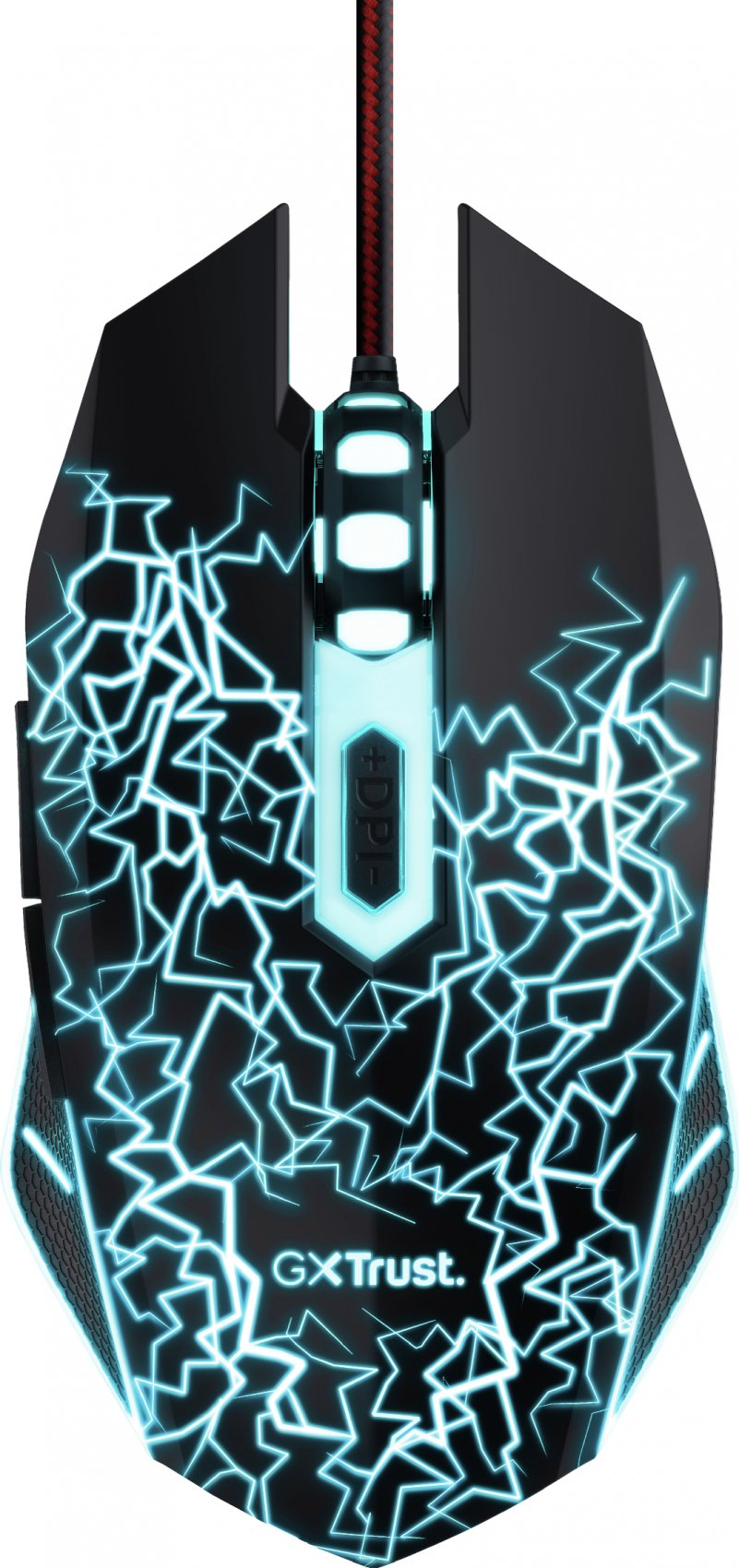 Trust GXT 105X Izza. Factor de forma: Ambidextro. Tecnología de detección de movimientos: Óptico, Interfaz del dispositivo: USB tipo A, Resolución de movimiento: 4000 DPI, Tipo de botones: Botones presionados, Cantidad de botones: 6, Tipo de desplazamiento: Rueda, Aceleración (máx.): 8 G. Iluminación de color: Multi. Fuente de energía: Cable. Color del producto: Negro