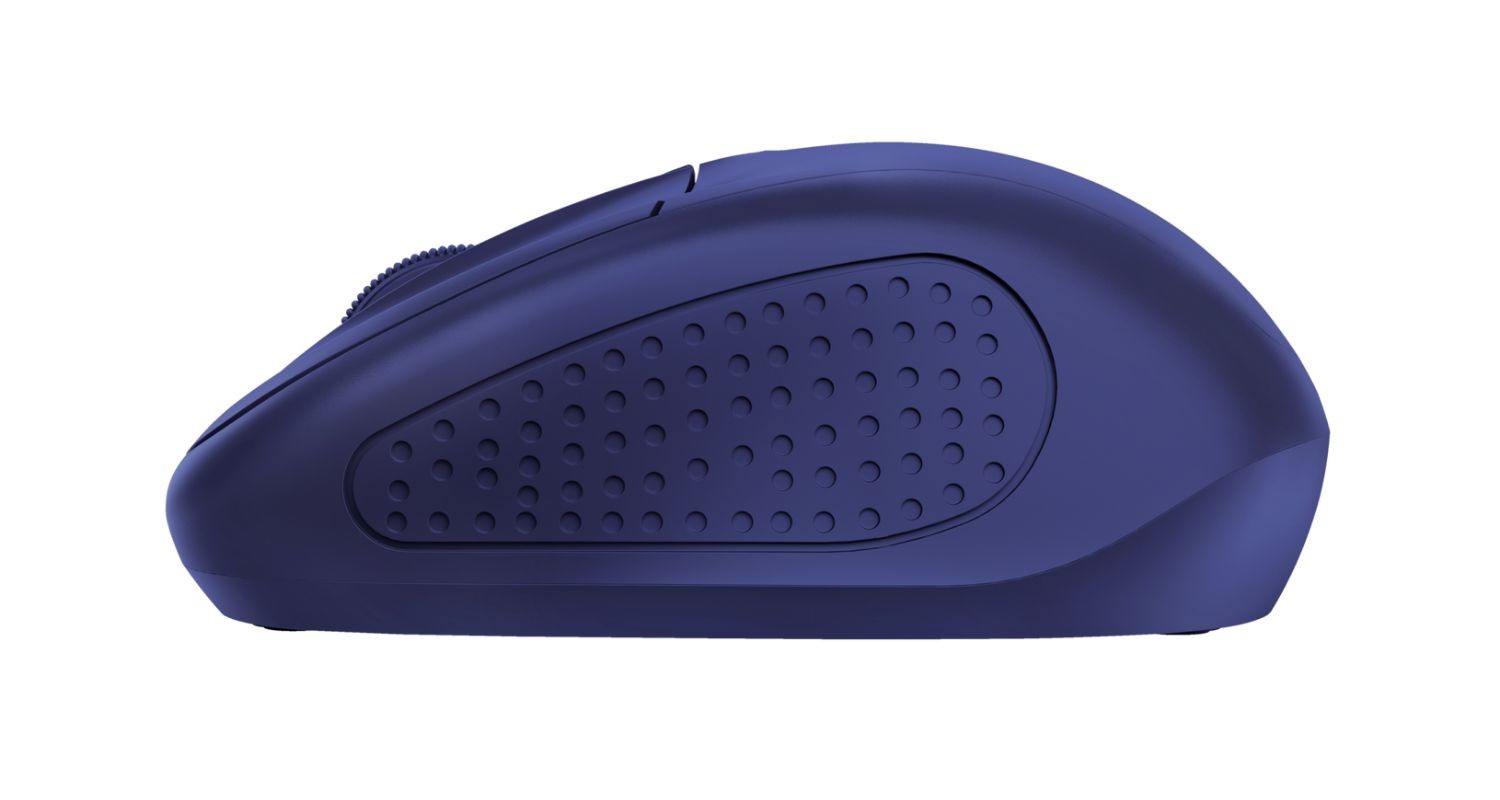 Trust Primo. Factor de forma: Ambidextro. Tecnología de detección de movimientos: Óptico, Interfaz del dispositivo: RF inalámbrico, Resolución de movimiento: 1600 DPI, Tipo de botones: Botones presionados, Cantidad de botones: 4, Tipo de desplazamiento: Rueda. Fuente de energía: Baterías. Color del producto: Azul