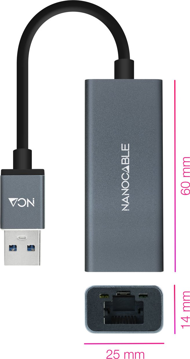 Nanocable Conversor Usb 3.0 A Ethernet Gigabit 10 100 1000 Mbps, Aluminio, Gris, 15 Cm