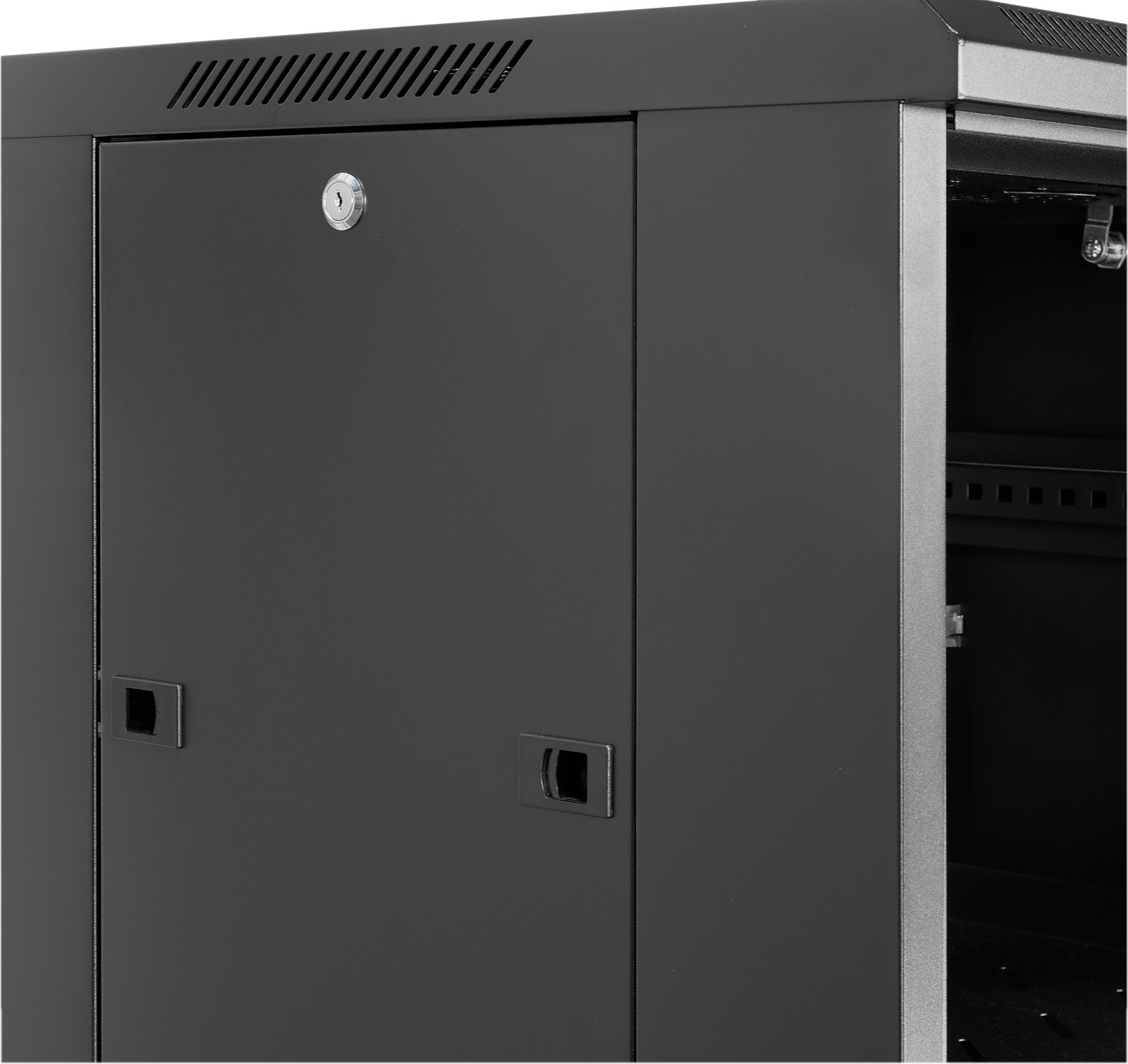 Distintas alturas y capacidades que van desde 22U a 47U, con anchos de entre 600 mm a 800 mm y fondos entre 600 mm a 1000 mm. Todos los armarios poseen puertas de cristal, perforadas o, en el caso de los armarios más grandes, existe la opción de doble puerta, lo que permite trabajar en una parte del mueble mientras la otra parte está cerrada y protegida.