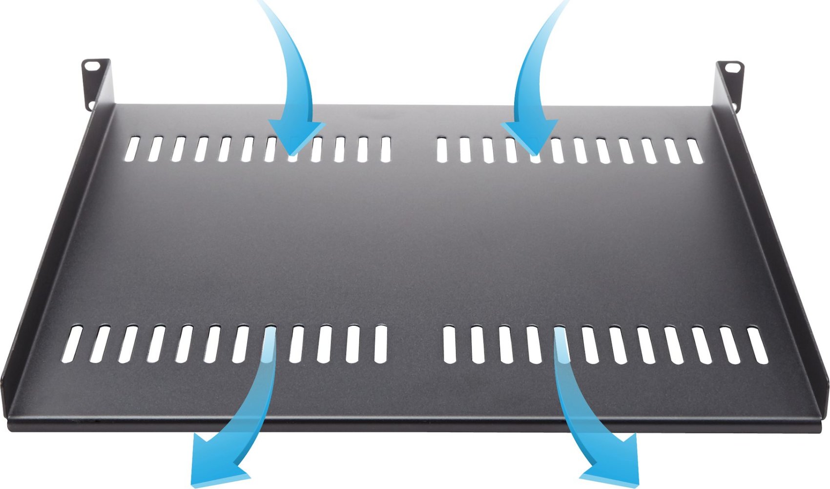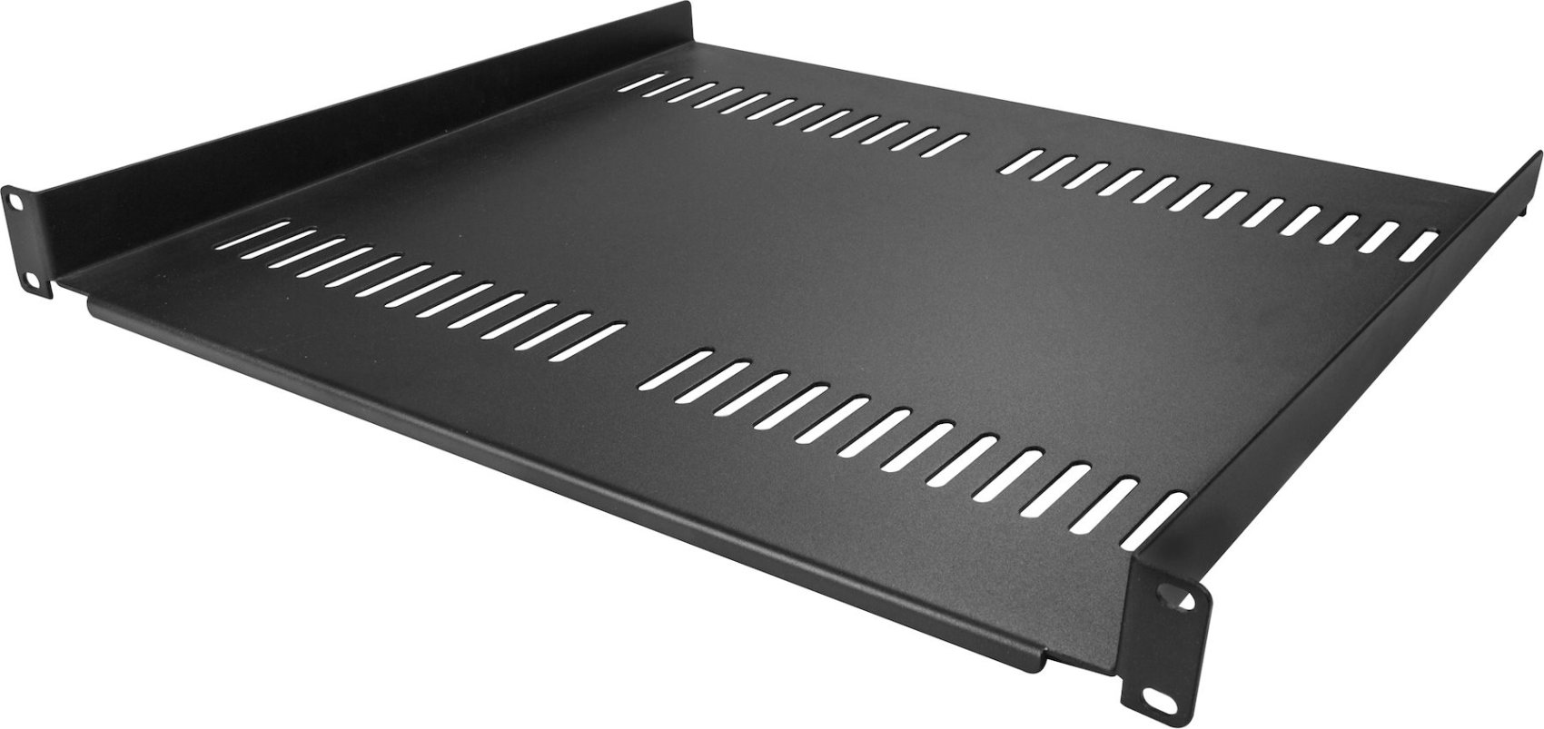 Esta bandeja 1U de armario para racks le permite agregar 40cm de espacio plano de almacenamiento en cualquier rack o armario compatible con EIA-310. El estante tiene aberturas de ventilación para permitir la circulación de aire y disipar las temperaturas de su rack.