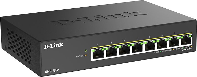 D-link Dms-108p E Switch No Administrado 2.5g Ethernet (100 1000 2500) Energía Sobre Ethernet (PoE) Negro