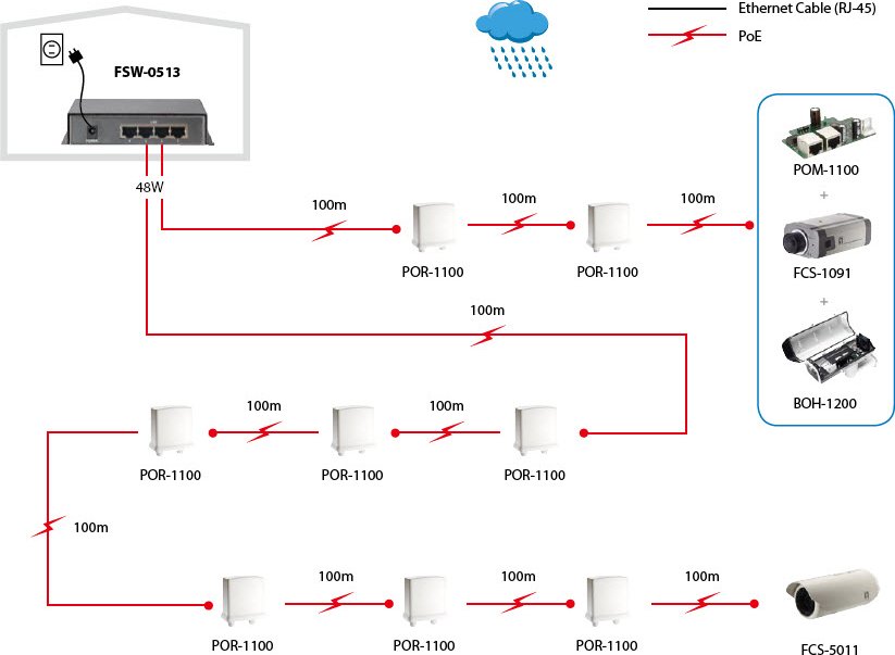 l FSW-0513 es un Switch Fast Ethernet 10/100 Mbps con 4 puertos PoE de Alta Potencia y un puerto Uplink. Con una potencia de 120W, FSW-0513 es excelente para el despliegue de dispositivos de red que requieren de alta potencia, tales como cámaras domo y puntos de acceso para exteriores. Además, con PoE de alta potencia, el alcance de los dispositivos se puede extender a cientos de metros.
