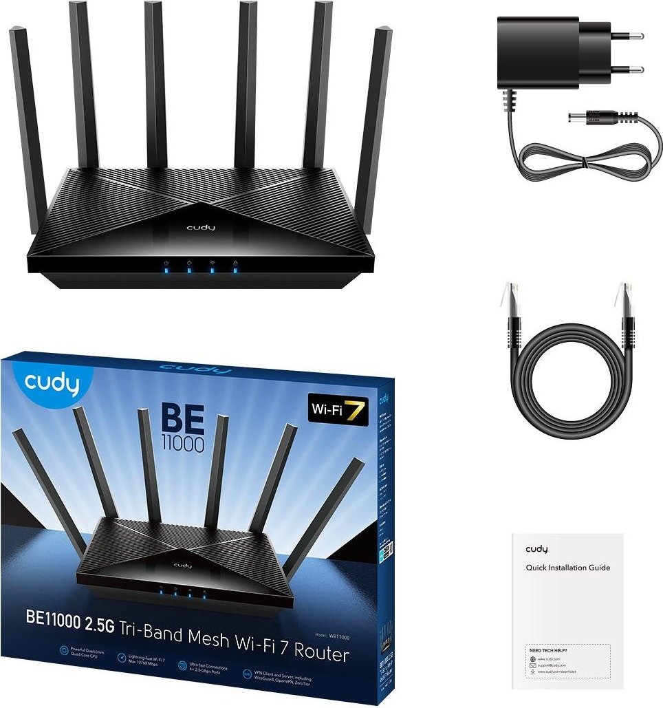 Cudy Wr11000 Router Inalámbrico 2.5 Gigabit Ethernet Tribanda (2.4 GHz / 5 GHz / 6 GHz) Negro