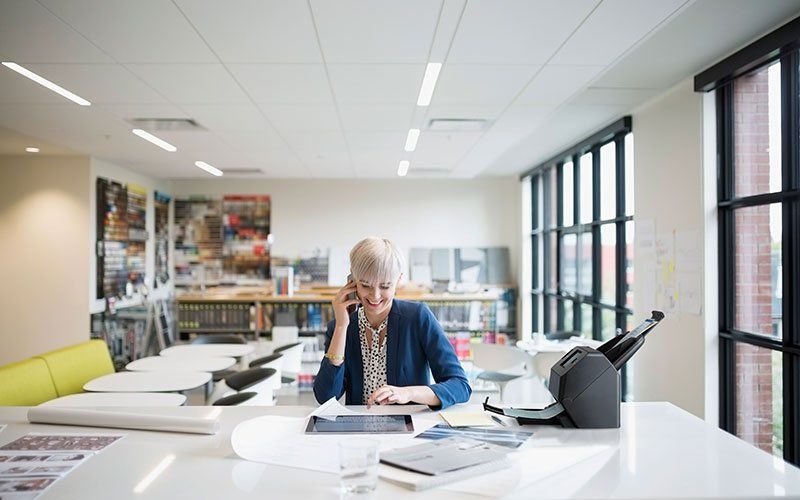 - Alimentador automático de documentos (ADF) + escáner de alimentación manual