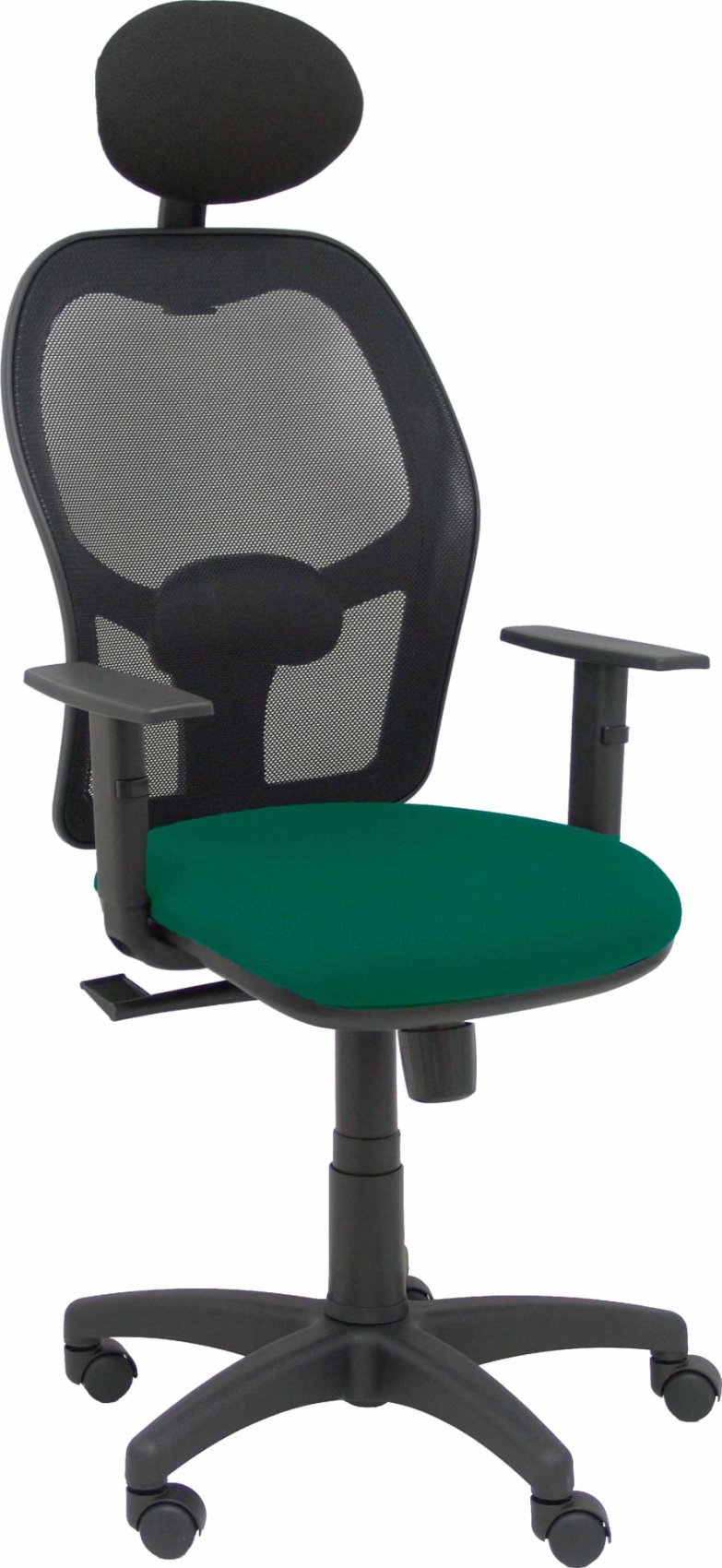Piqueras y Crespo Silla Alocén malla negra asiento bali verde botella brazos regulables cabecero fijo