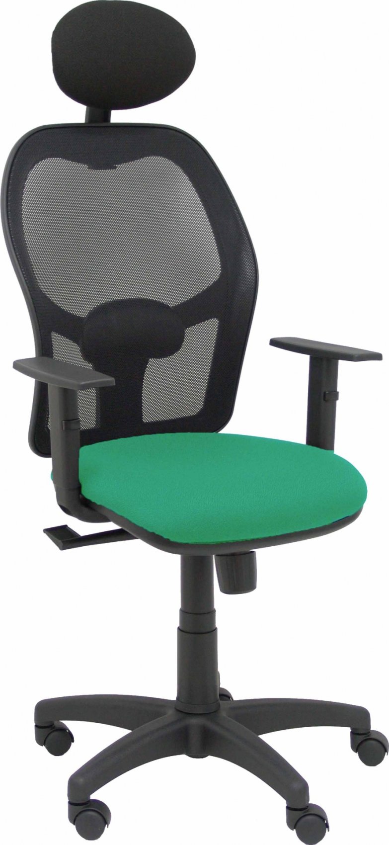 Piqueras y Crespo Silla Alocén malla negra asiento bali verde esmeralda brazos regulables cabecero fijo