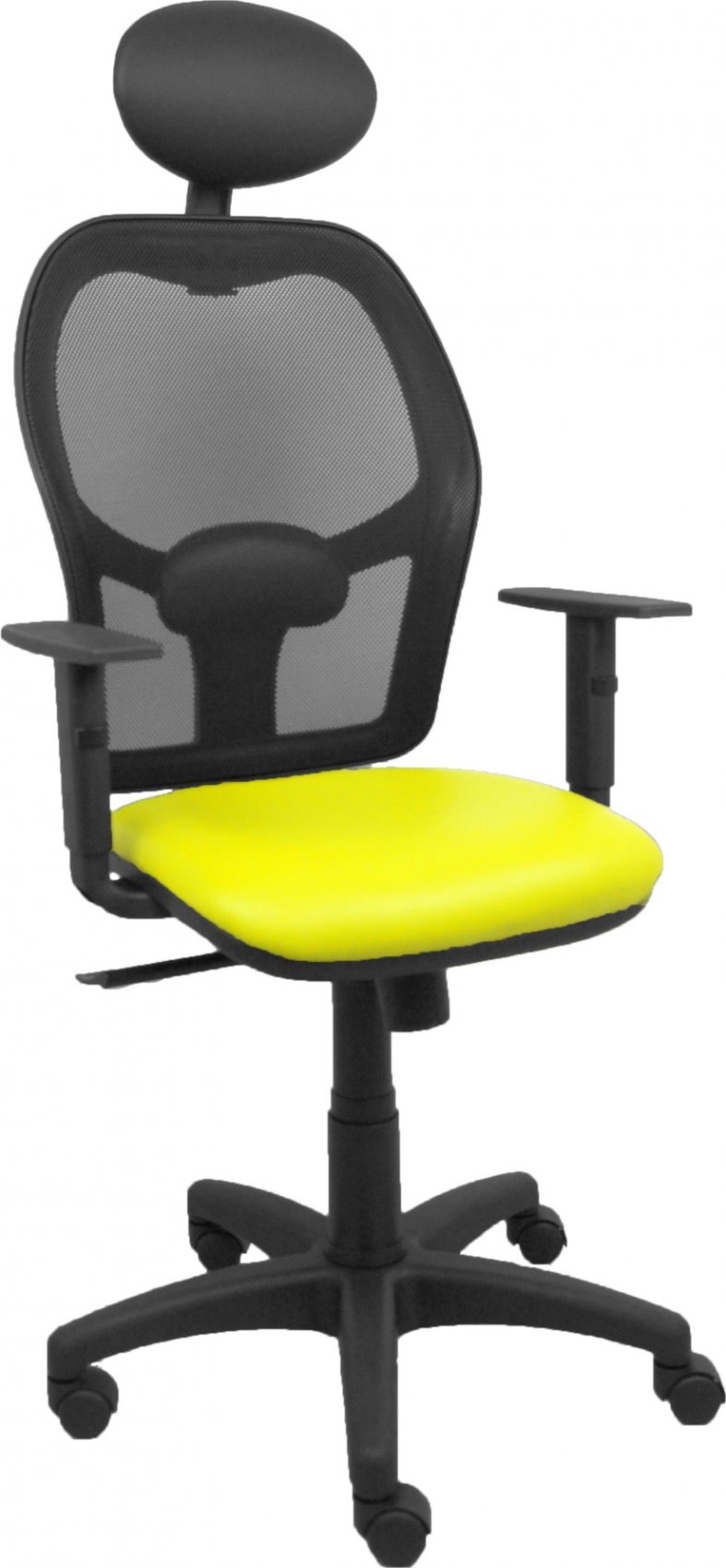 Piqueras Y Crespo Silla Alocén Malla Negra Asiento Similpiel Amarillo Brazos Regulables Cabecero Fijo