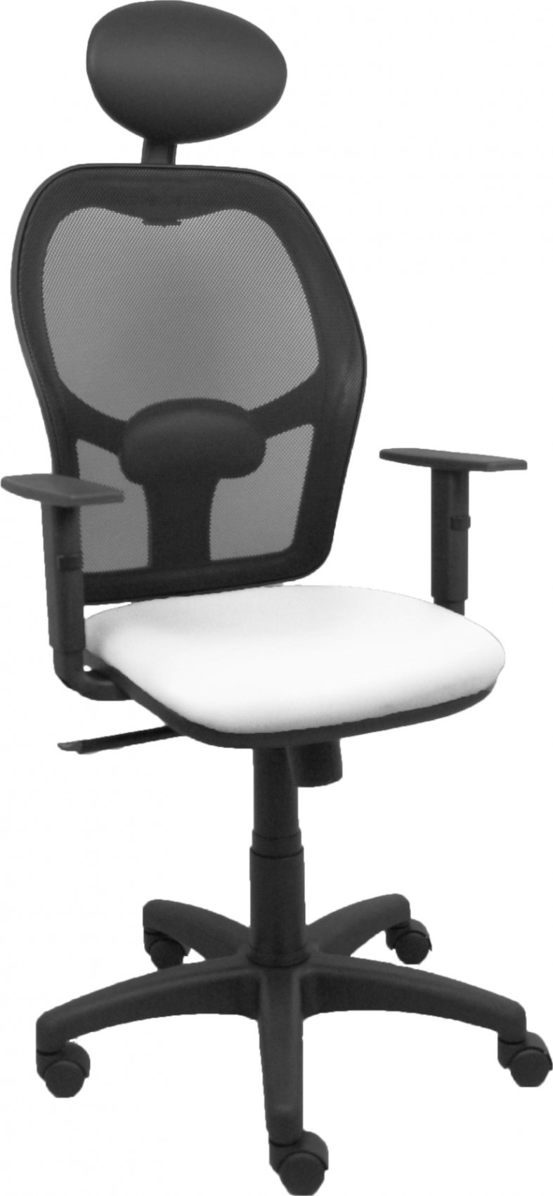Piqueras y Crespo Silla Alocén malla negra asiento similpiel blanco brazos regulables cabecero fijo