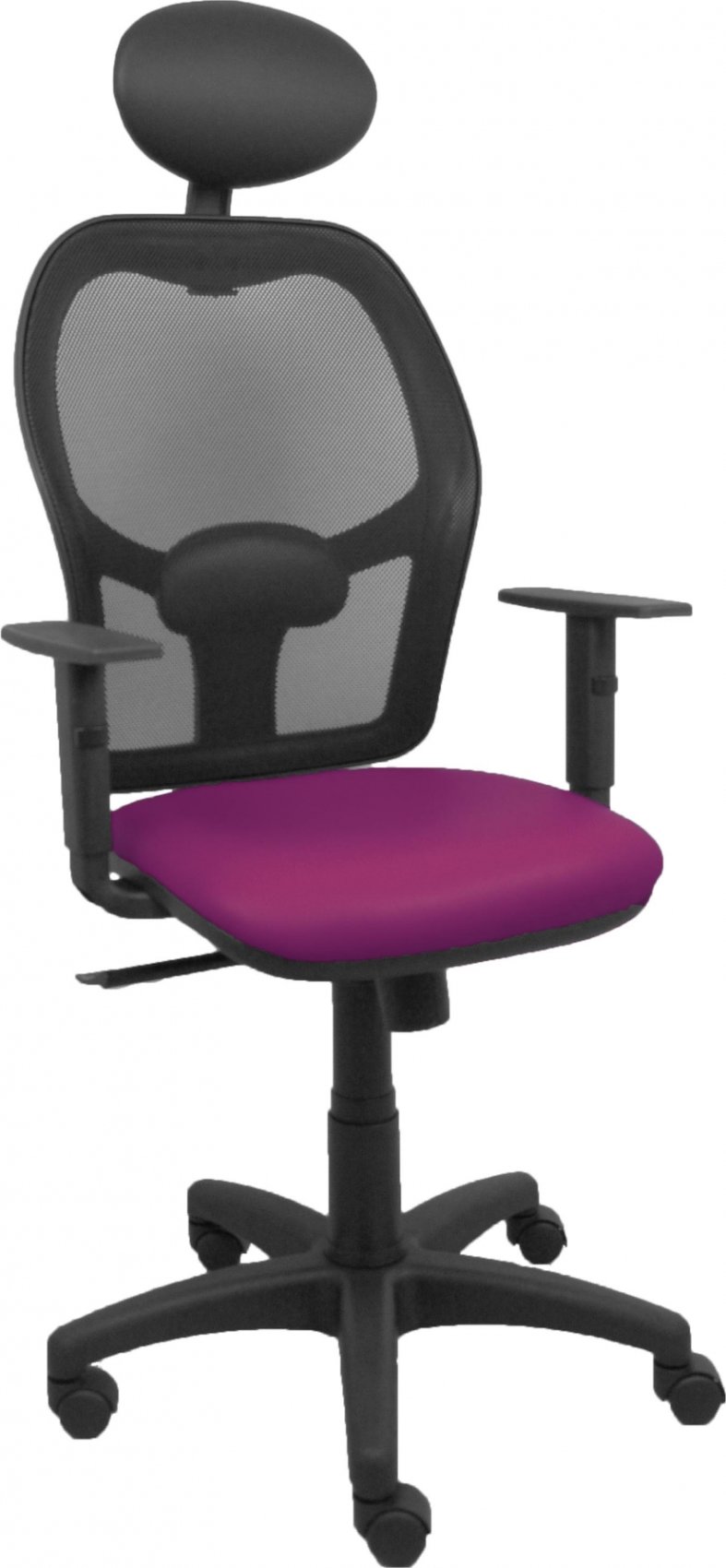 Piqueras y Crespo Silla Alocén malla negra asiento similpiel morado brazos regulables cabecero fijo