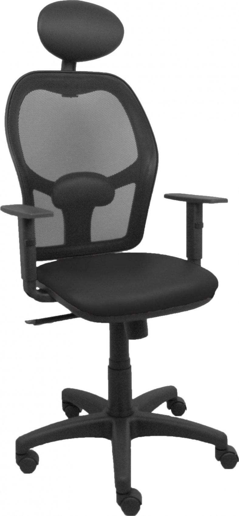 Piqueras y Crespo Silla Alocén malla negra asiento similpiel negro brazos regulables cabecero fijo