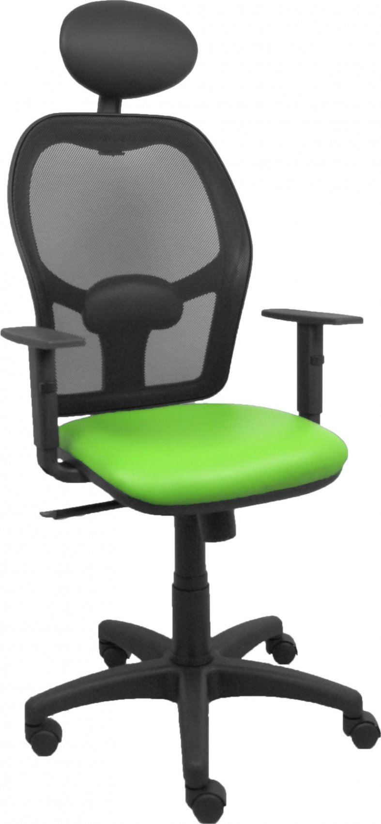Piqueras y Crespo Silla Alocén malla negra asiento similpiel pistacho brazos regulables cabecero fijo