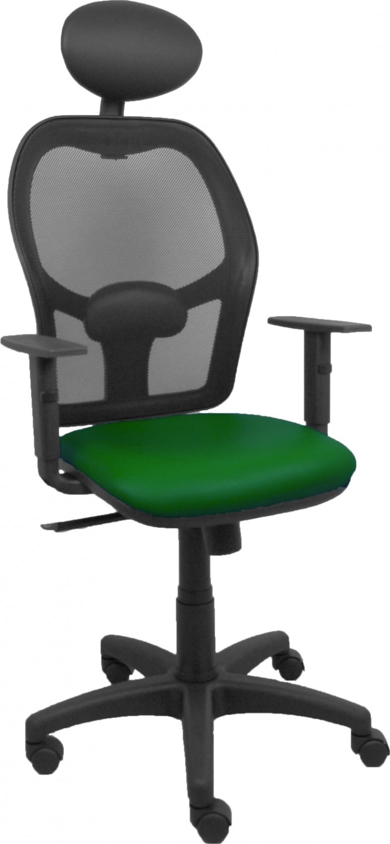Piqueras y Crespo Silla Alocén malla negra asiento similpiel verde botella brazos regulables cabecero fijo