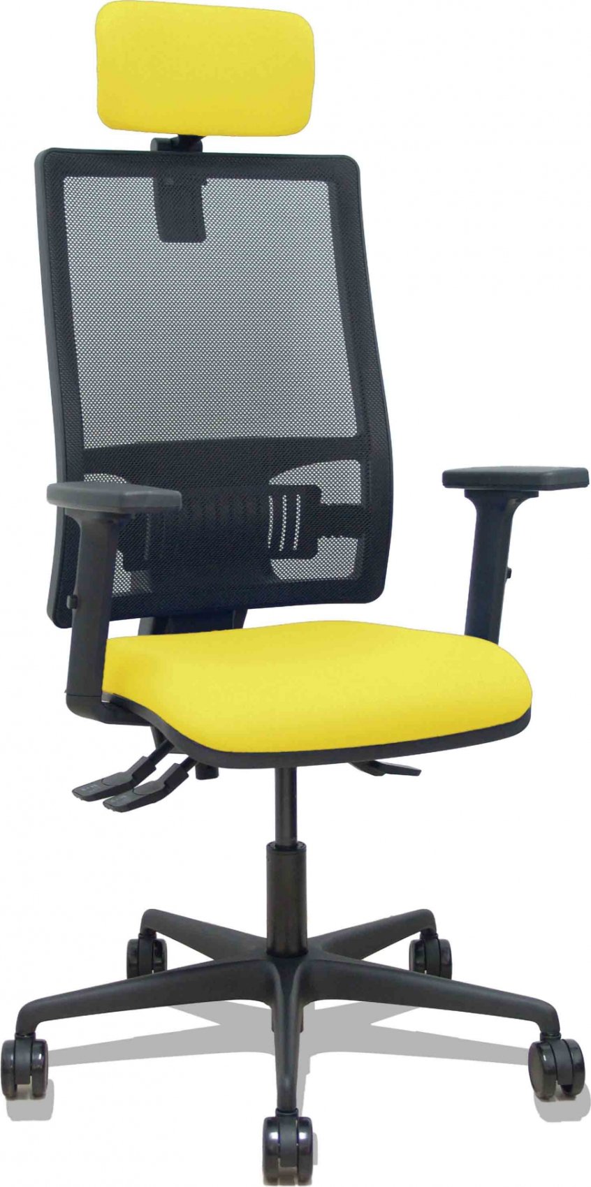 Piqueras y Crespo Silla Bormate asincro malla negra asiento bali amarillo brazos 2D ruedas 65mm cabecero regulable