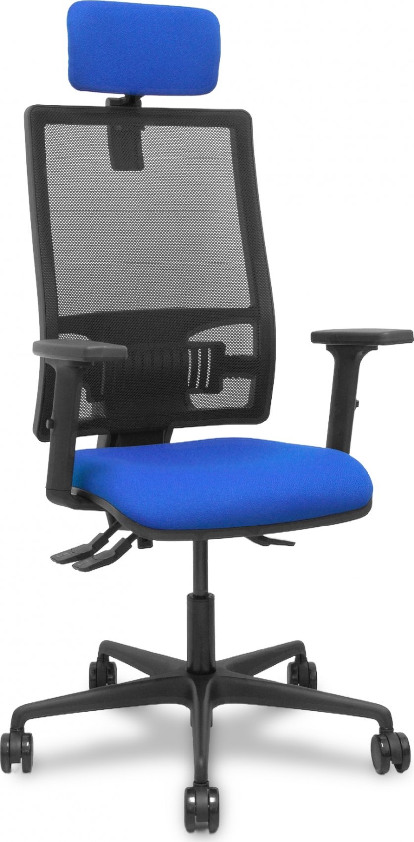 Piqueras y Crespo Silla Bormate asincro malla negra asiento bali azul brazos 2D ruedas 65mm cabecero regulable